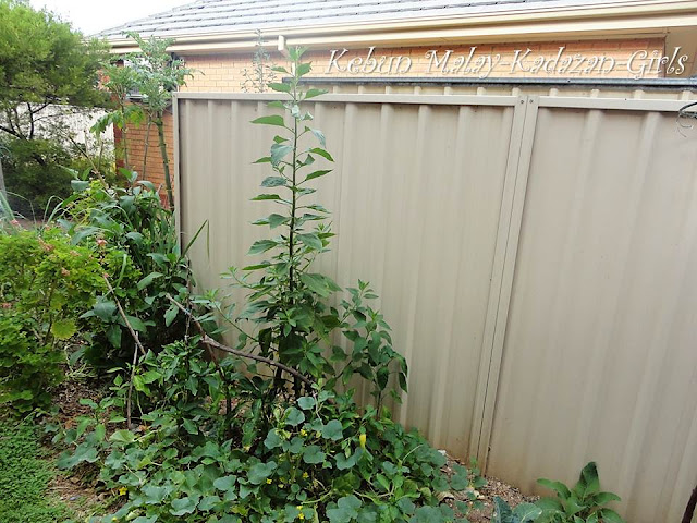 Last year autumn, we transplanted some spring onion seedling under sunflower plants to make the garden more productive. Those spring onion does not seem to mind sitting under the sunflower because it still received direct light from the sun in the morning. We also had a row of carrots growing in front of the spring onion plants.